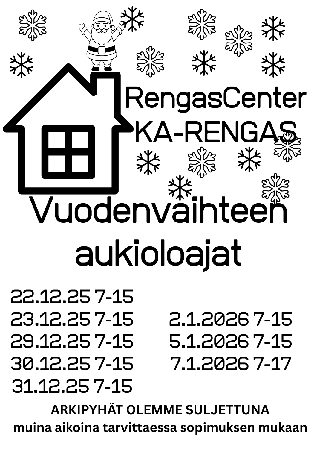 🎄 Vuodenvaihteen aukioloajat