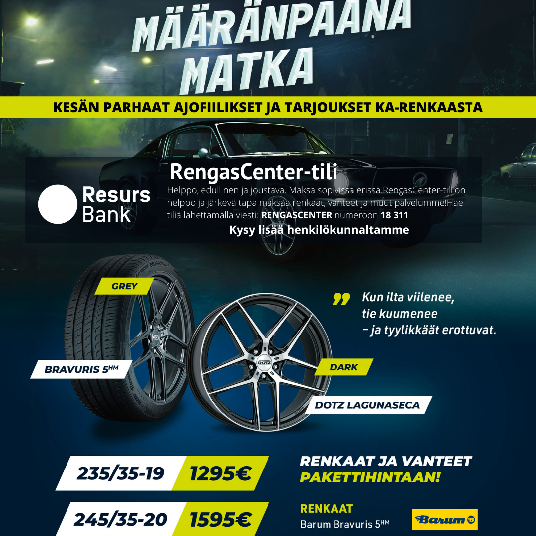 Meiltä laaja valikoima renkaita ja vanteita kaikenlaisiin menopeleihin -ja rahoituksen näihin saat vaivattomasti Resurs Bankilta!